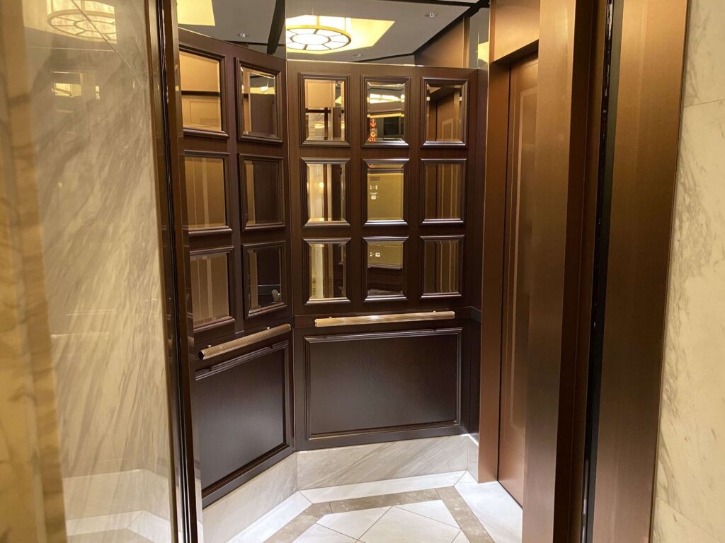 客室フロアへ向かうためのエレベーターです。クラシックな空間が最高すぎる。