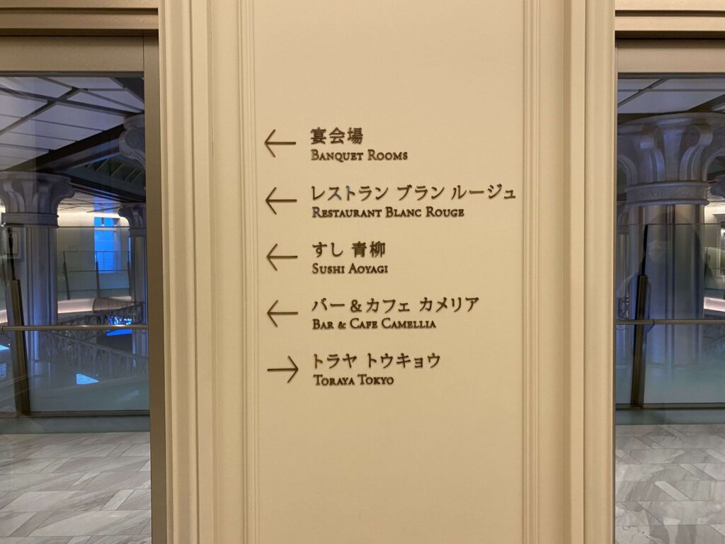 | レストラン&バー | The Atrium アトリウム Blanc Rouge ブランルージュ Shichi Jyu Ni Kou しち十二候 The Lobby Lounge ロビーラウンジ Camellia カメリア Oak オーク Sushi AOYAGI すし青柳 Cantonese”en”KEN TAKASE カントニーズ ”燕 ”ケン タカセ Yakitori Seo 焼鳥 瀬尾 Enoteca NORIO エノテカノリーオ TORAYA TOKYO トラヤ トウキョウ |