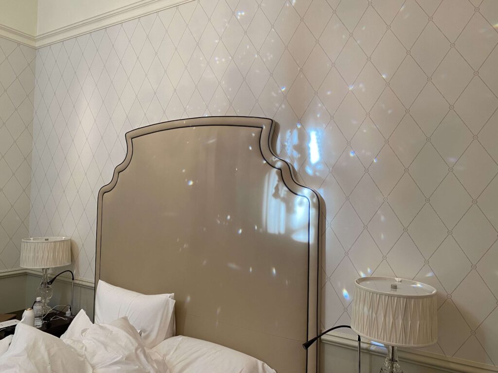 ドームの円形部分に沿った形なので、他のホテルと違う形があることがわかりますよね。では、まずベッド周りから見ていきましょう!