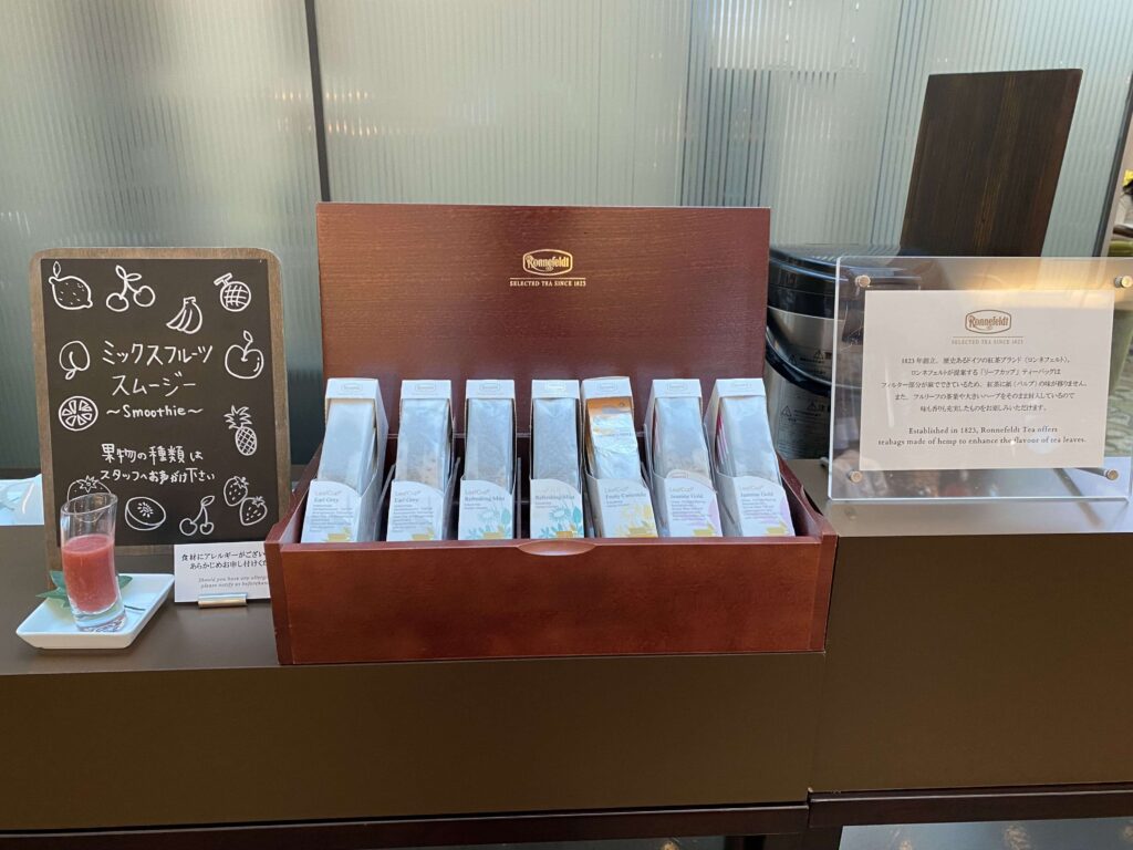シェフ特製のケーキも!飲み物はサーブしてくれるスタイルでこのようにお茶や