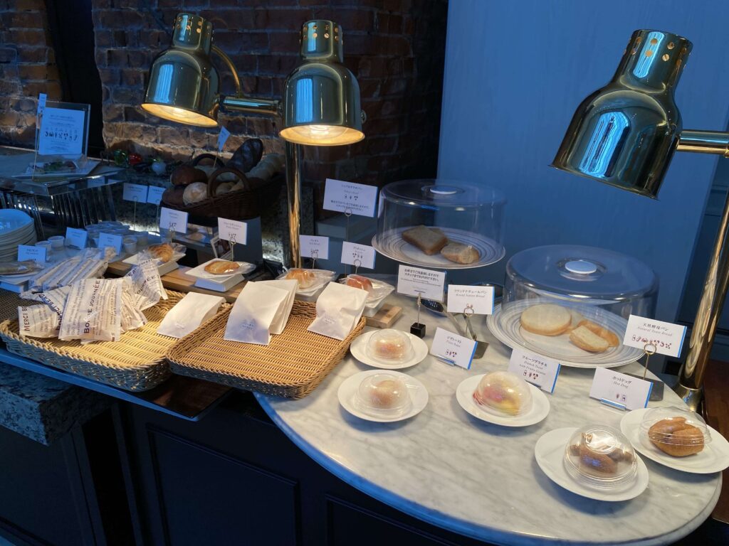 一番右手のゾーンはパン。1つ1つ、飛沫がかからないようにプラスチックのカップがあるのが嬉しいですね。プラスチック反対派の人には怒られそうですが(笑)