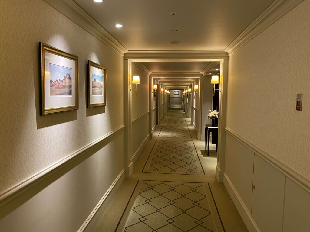 この東京ステーションホテル、東京タワーより2m長い335m。なので、廊下もめちゃくちゃに長い!歩いても歩いても部屋につかないので驚きでした。