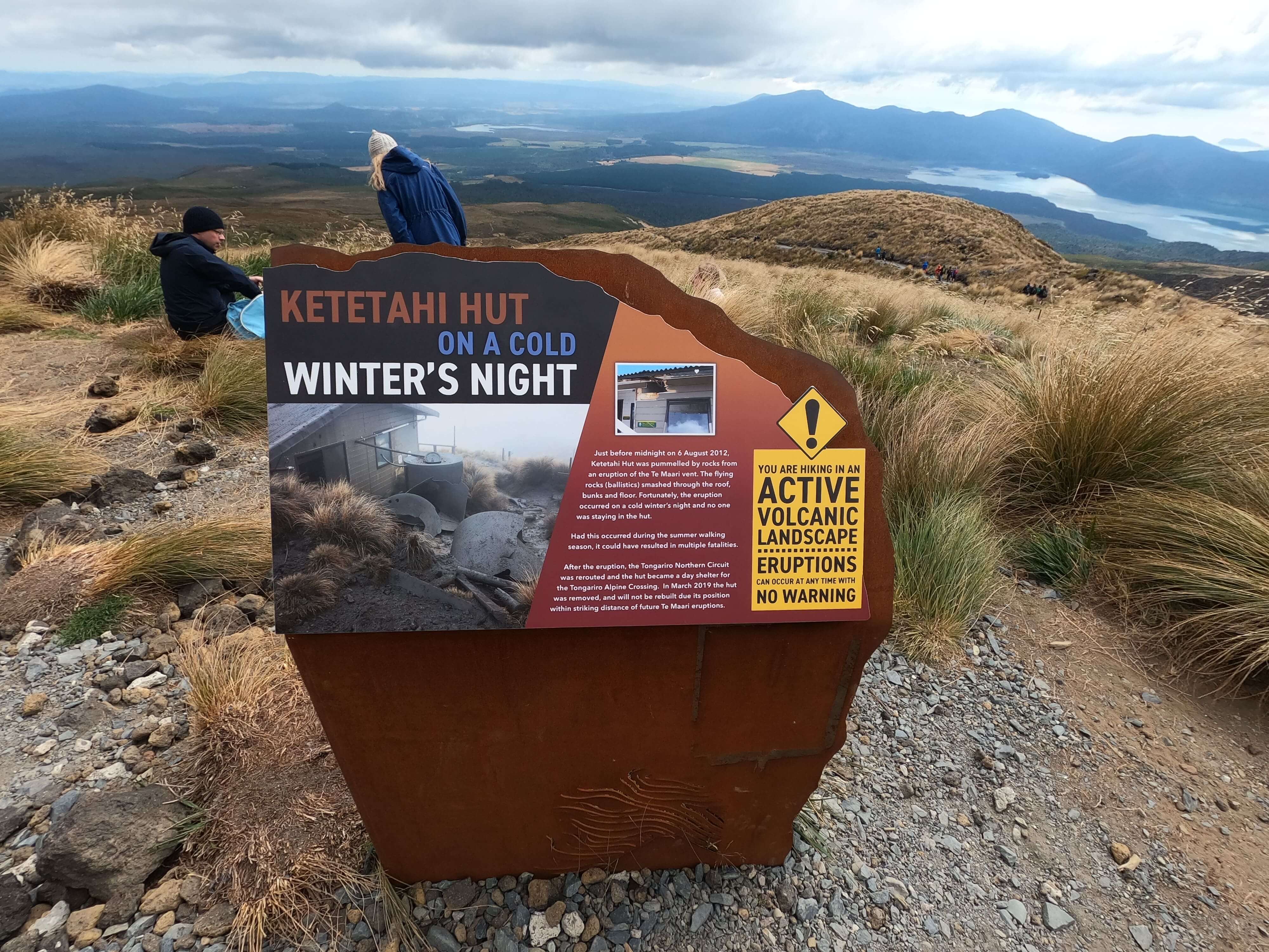 1〜2時間毎にこんな感じで説明の看板が。麓付近なら電波が通じたので、Google翻訳で!頂上付近だと圏外でした。