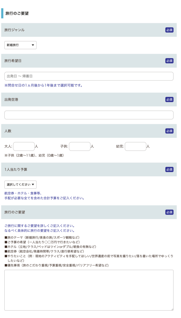 次に、旅行のタイプや希望日、出発日や人数を入れましょう!