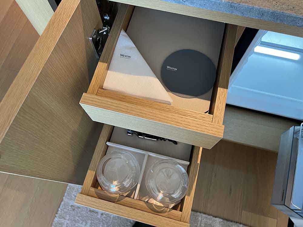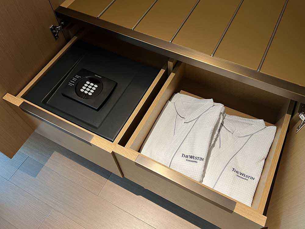 冷蔵庫の中身は空っぽ。コロナ感染のために空にしているホテルが多いので、ウェスティン横浜もそのせいかな、なんて思ったり。