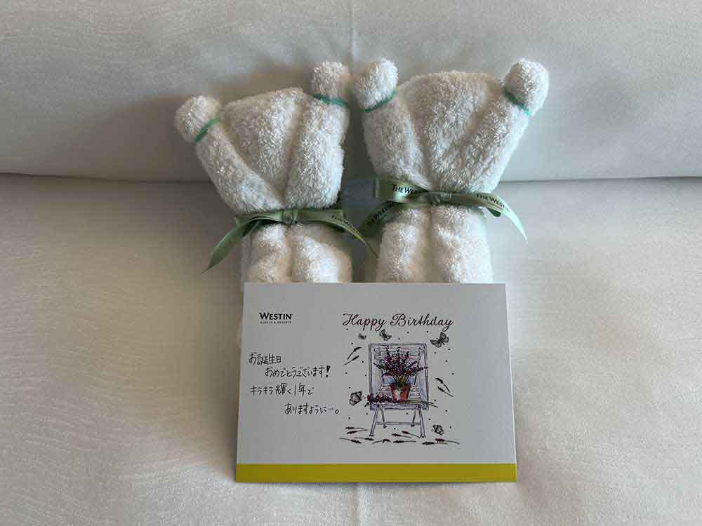 今回は、彼女ちゃんとのお祝いだったので、事前にリクエスト。こんなお祝いをしてくださいました。タオルアレンジメント?、初めて受け取ったのですが、とても嬉しいですね…。
